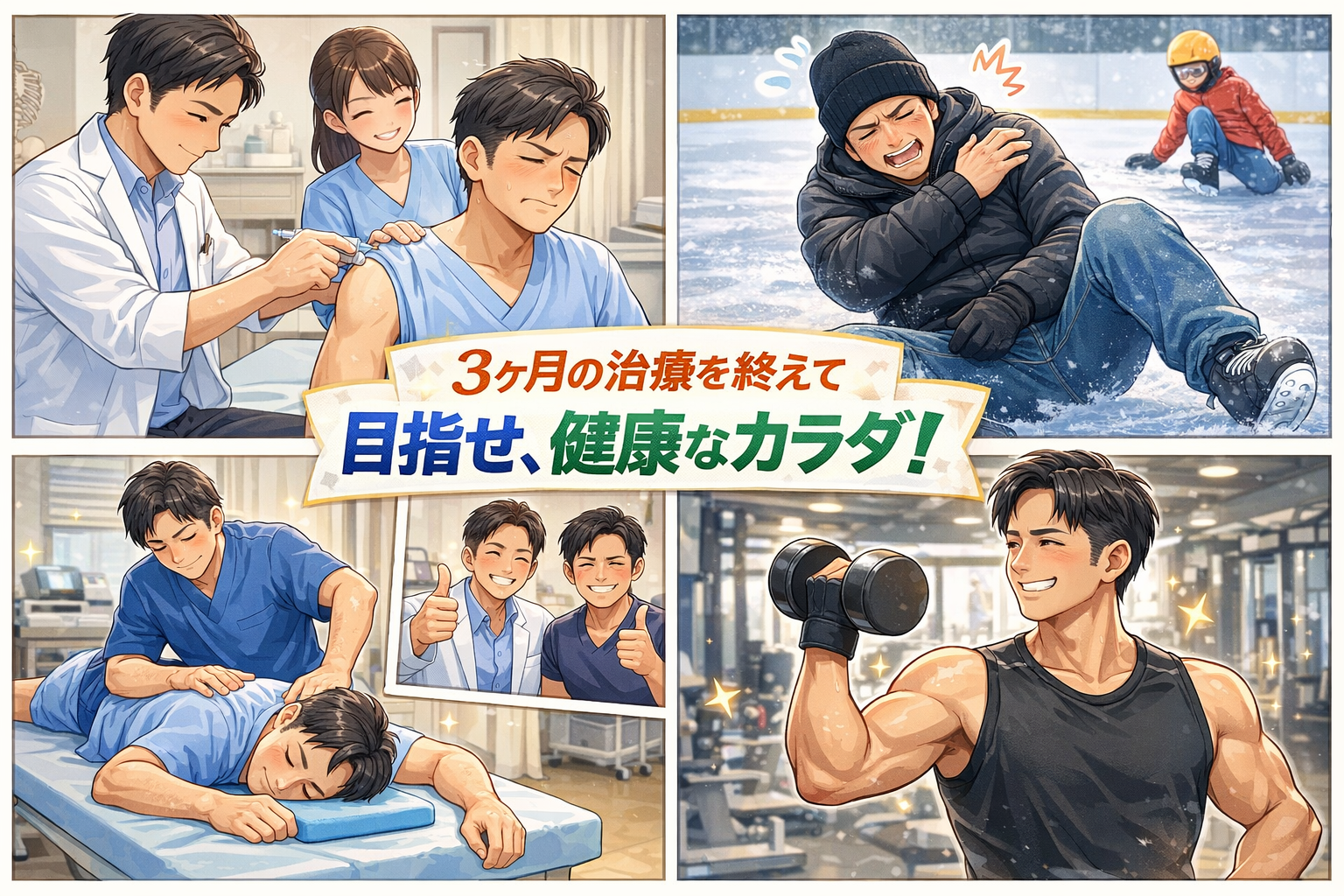 順調に回復していたのですが、ある日、子供とアイススケートしているときに大きくこけて、その日の晩から